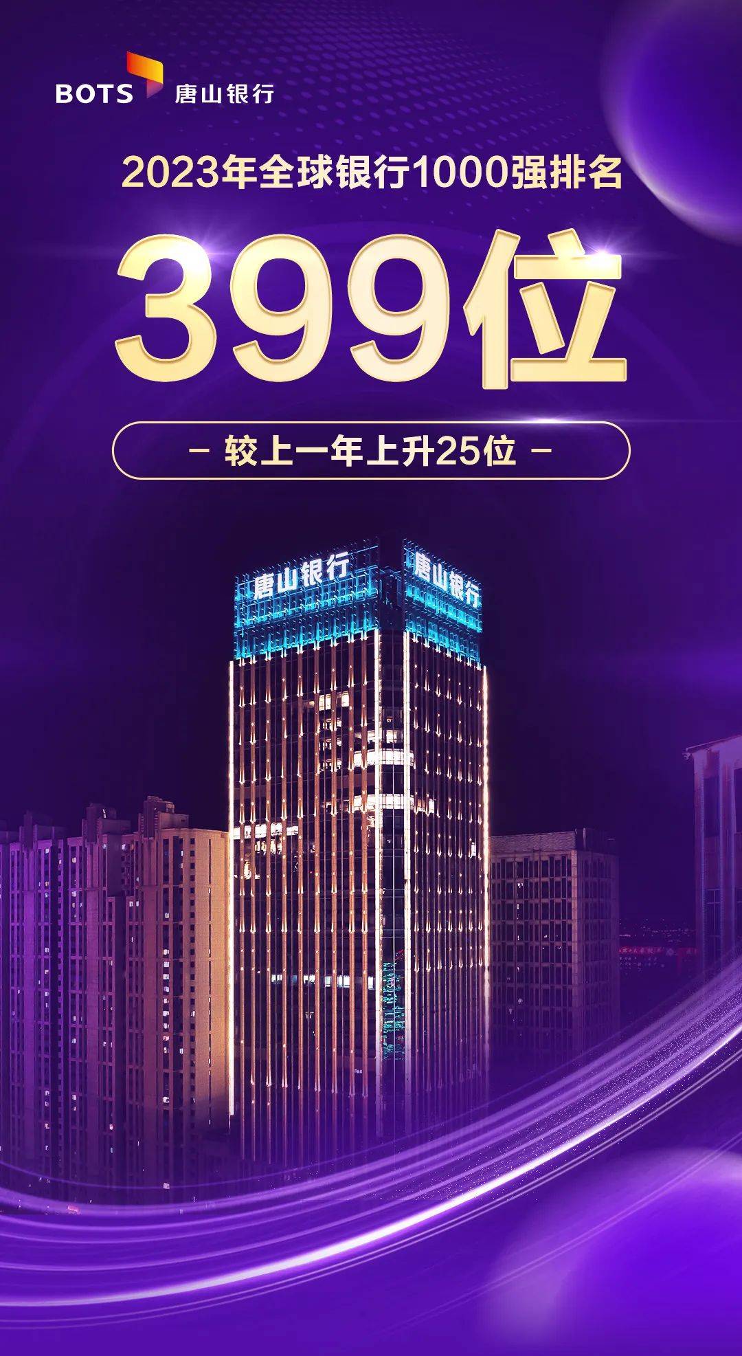 唐山银行位列全球排行榜第 399 位