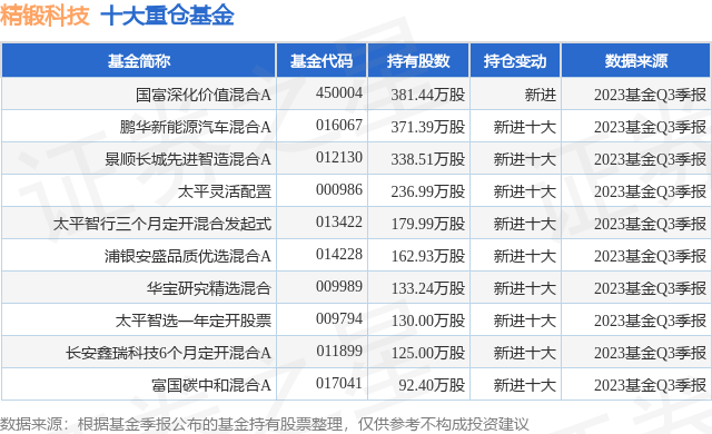 重仓精锻科技的前十大公募基金请见下表: