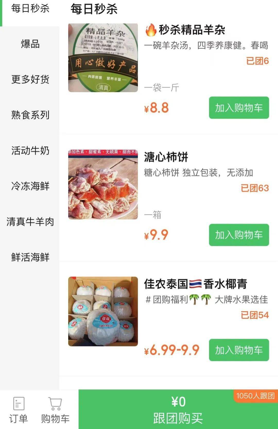 “租金太贵,压力也大,缩减一半的店面也不影响生意,在积累一年附近的固定客群后,大家平时基本都在群里下单,然后到店取货。”张涛将社区群打开后,对《灵兽》表示,“我们群里有个社区团购的小程序,上边品类更全,有熟食系列、活动价的牛奶、冷冻海鲜、清真牛羊肉等等,每日秒杀活动会有一些生鲜水果蔬菜,都很便宜。”