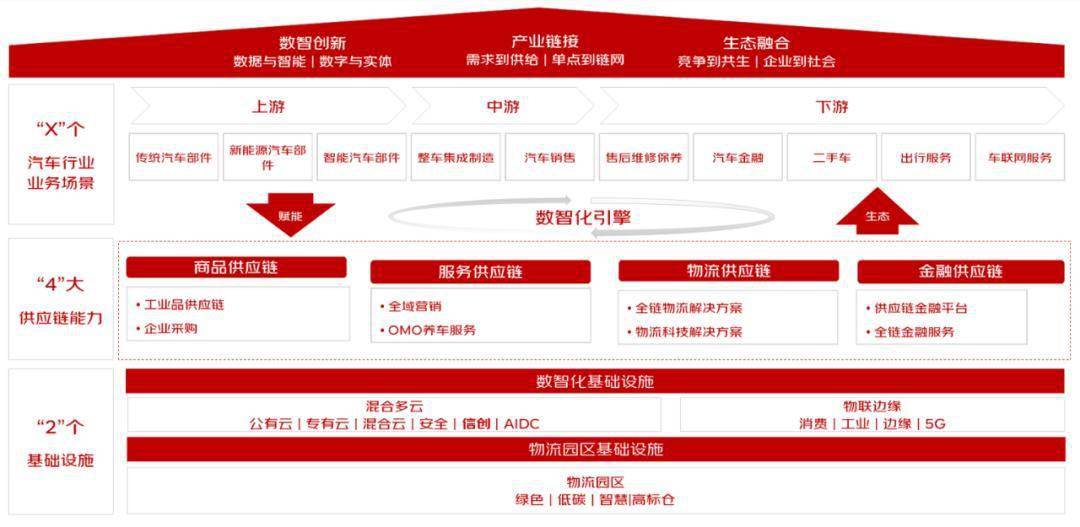 (“2”个基础设施,“4”大供应链能力,以及围绕汽车上中下游展开的丰富业务场景)