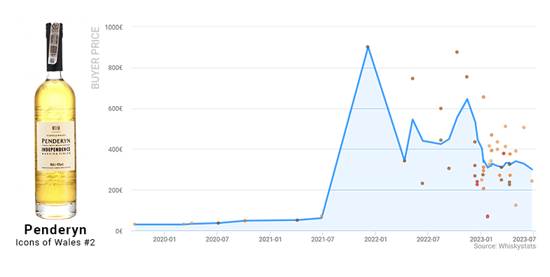 这次,Whiskystats将关注点放在了成立于2004年的新酒厂潘德林(Penderyn) 惊人的价格波动上。
