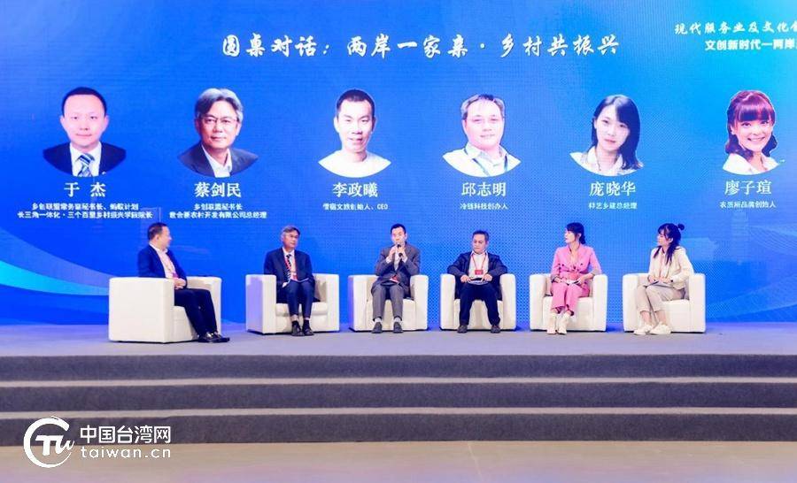 在圆桌对话环节,乡创联盟秘书长蔡剑民、电商联盟秘书长张铁成分别和来自海峡两岸的成员企业负责人展开了对话。