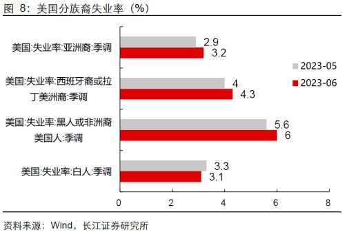4、尽管6月失业率再回落,但就业格局较差,青少年、低端劳动力及非白人求职压力仍大。