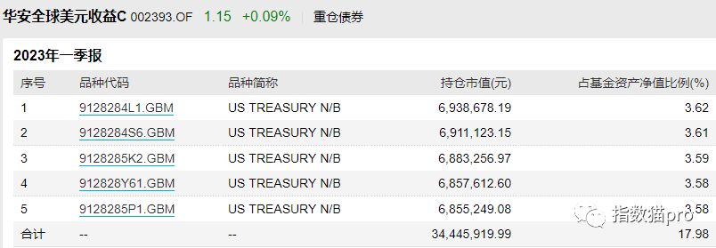 还有 华安全球美元收益,历史前五多为高收益债,2020年下半年逐步调仓至金融债和投资级债券,目前 一季度前五均为美国国债。