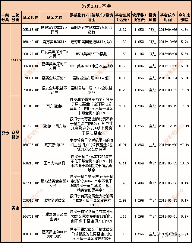 1)商品能源和黄金QDII 总共8只,都是FOF,即基金中基金, 主要投资全球范围内的相关基金,