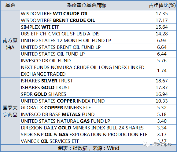 比如南方原油A一季度重仓的基金中,就有“WISDOMTREE BRENT CRUDE OIL”这只基金,跟踪的是 布伦特原油期货。