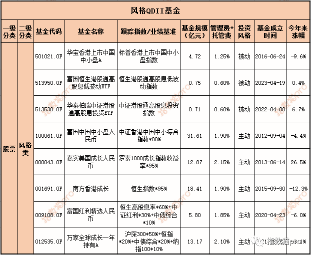 风格类QDII基金大概有这些: