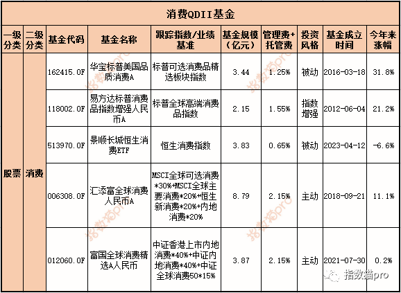 最后两只是主动基金, 汇添富全球消费人民币A、 富国全球消费精选A人民币,