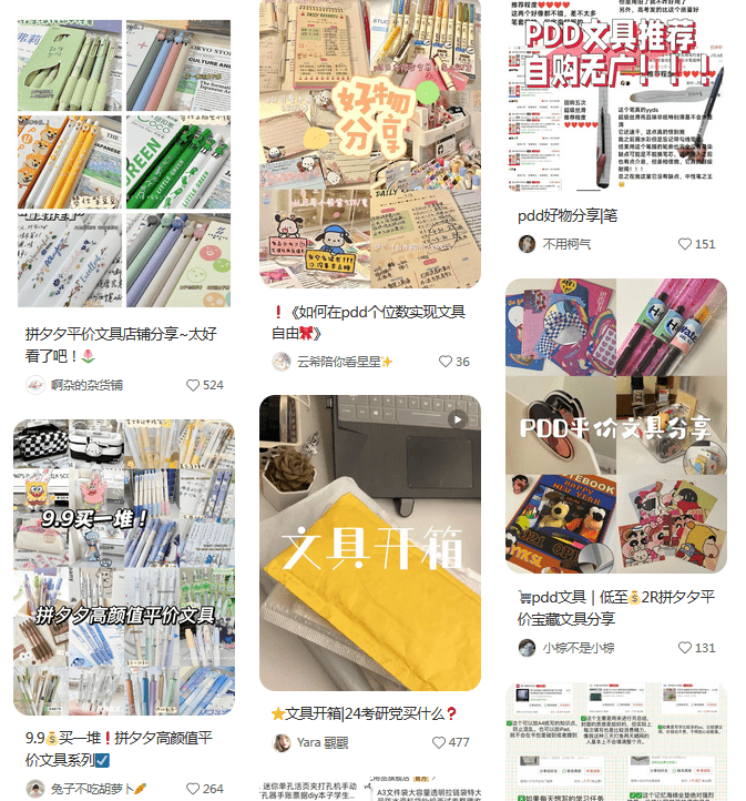 在《拼多多个位数实现文具自由》《9.9买一堆高颜值平价》的帖子收到追捧背后,是年轻人在“要么丑要么贵”的文具世界里受过太多伤。