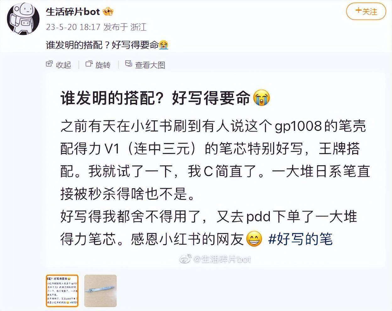 在断墨、油墨发灰的吐槽下,有人坚定地认为“很好用,你觉得不好用是买到假的了吗”“高中三年用了上百只,上大学用的少了,一根太持久了根本用不完”“出墨很顺畅很丝滑”。