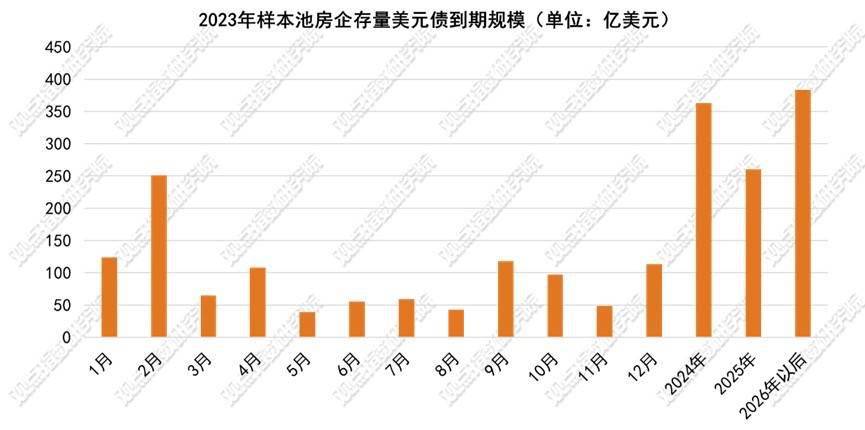 在偿债结构方面,2022年大批美元债于后半年到期,2023年截然相反,上半年偿债压力较大。与此同时,因为2022年美元债发行量的锐减,造成2023-2025年的偿债压力并无较大增幅。