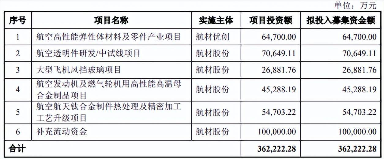 按照发行计划,航材股份原募集资金36.22亿元,拟用于航空高性能弹性体材料及零部件产业项目、航空透明件研发/中试线项目等。