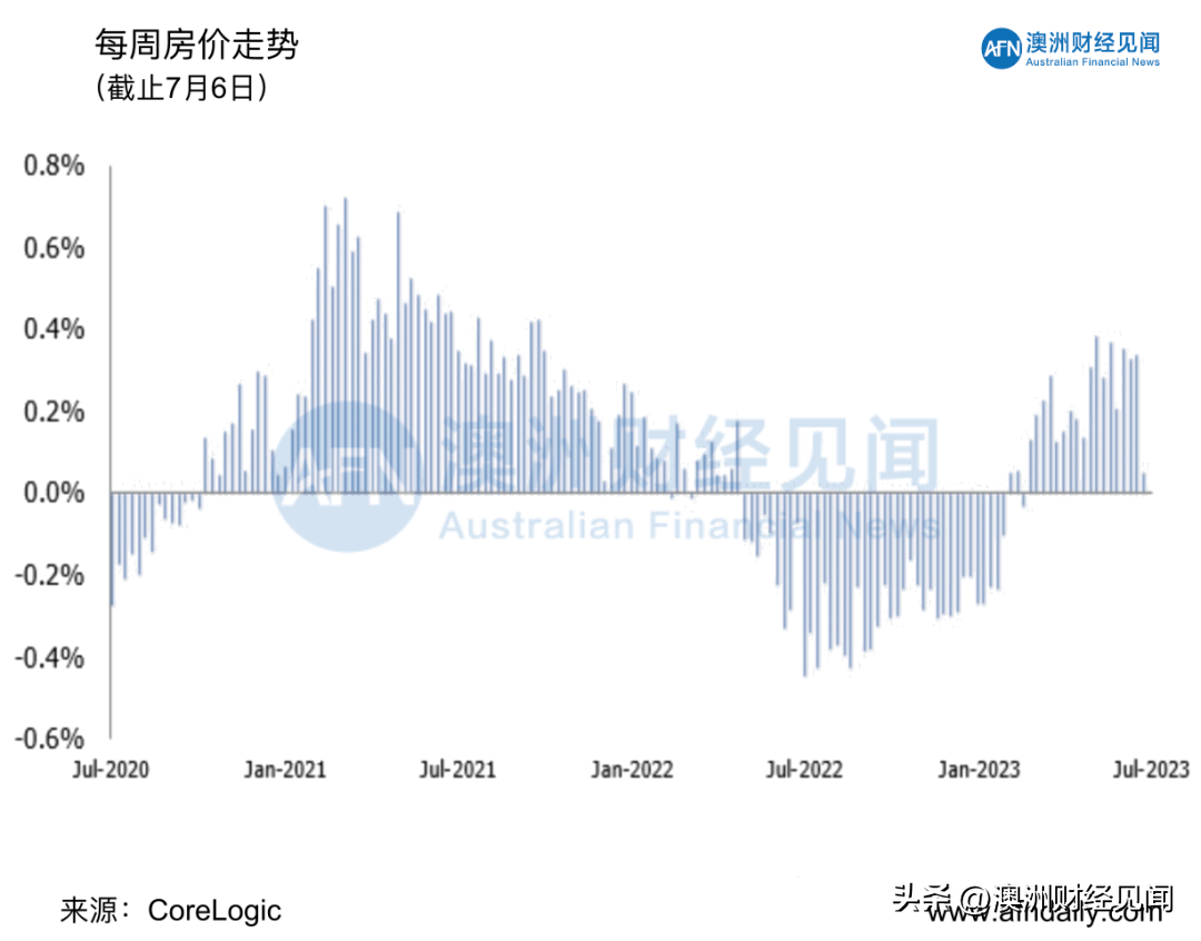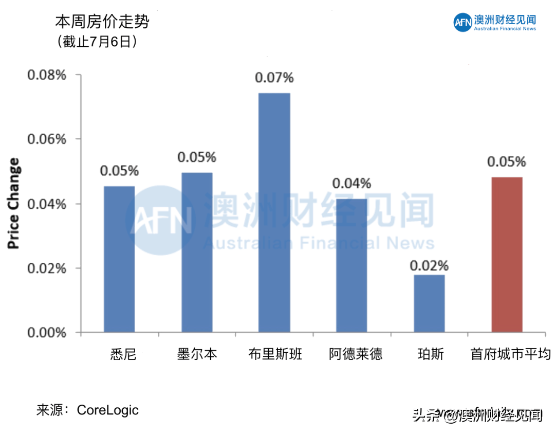 截至 7 月 6 日,本周澳洲5 个首府城市的房价仅上涨 0.05%,这是自 2 月中旬以来最弱的价格涨幅。