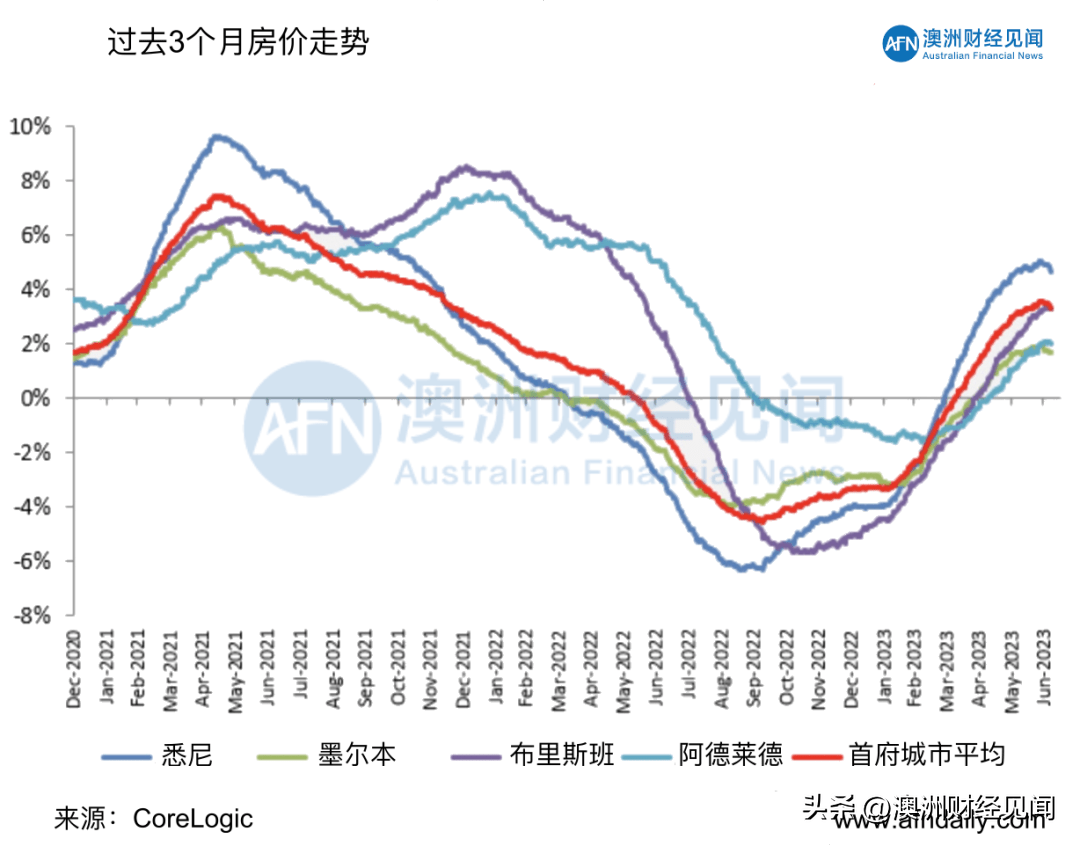 根据 CoreLogic 的数据,所有主要市场过去3个月房价增长率也有所下降。