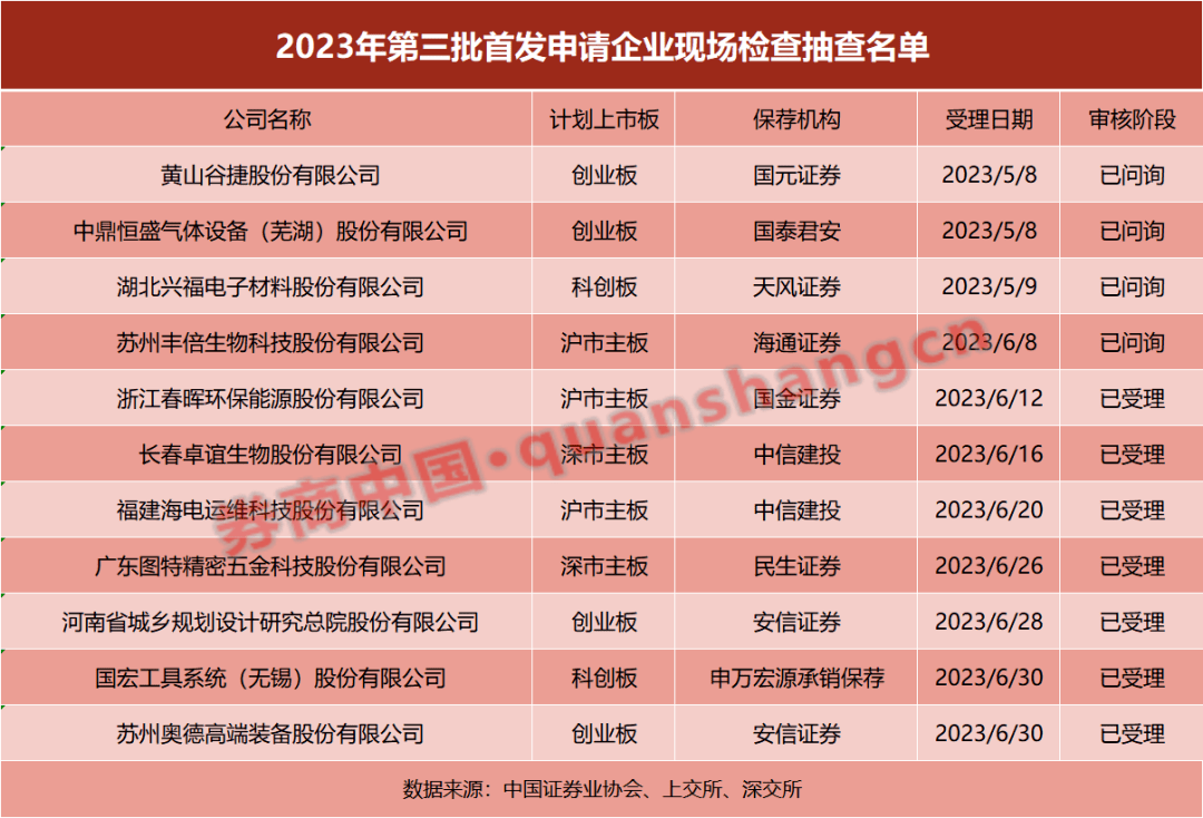 第三批IPO现场检查抽查名单落定