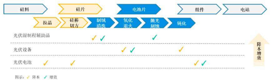 公司相继推出了光伏湿制程辅助品、光伏设备及光伏电池三大类主要产品,其中辅助品类产品包括制绒辅助品、抛光辅助品、清洗辅助品等,主要用于光伏电池生产的制绒、刻蚀抛光、清洗等环节。设备类产品包括链式退火设备、体缺陷钝化设备等,主要用于光伏电池生产的氧化、体缺陷钝化等环节。公司辅助品类产品和设备类产品的主要客户为光伏电池生产企业,已覆盖主流电池企业。公司的半片电池产品采用以边皮料为原材料的生产工艺,主要客户为电池组件企业。