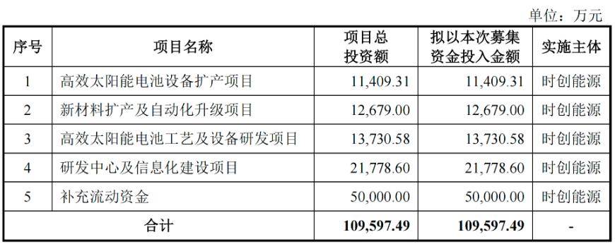 按照计划,公司此次募集资金将用于高效太阳能电池设备扩产项目、新材料扩产及自动化升级项目、高效太阳能电池工艺及设备研发项目、研发中心及信息化建设项目和补充流动资金,其中补充流动资金计划占用近一半的募集资金。