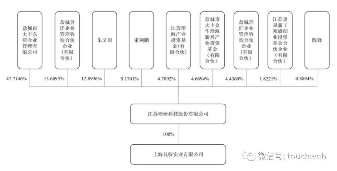 IPO前,盐城昱洋企业管理咨询合伙企业(有限合伙)持股13.6095%,朱文明持股为12.8996%,江苏沿海产业投资基金(有限合伙)持股为4.7892%,盐城市大丰金沿海新兴产业投资基金(有限合伙)持股为4.6694%,江苏疌泉新工邦盛创业投资基金合伙企业(有限合伙)持股为1.8221%,陈锋持股为0.8894%。