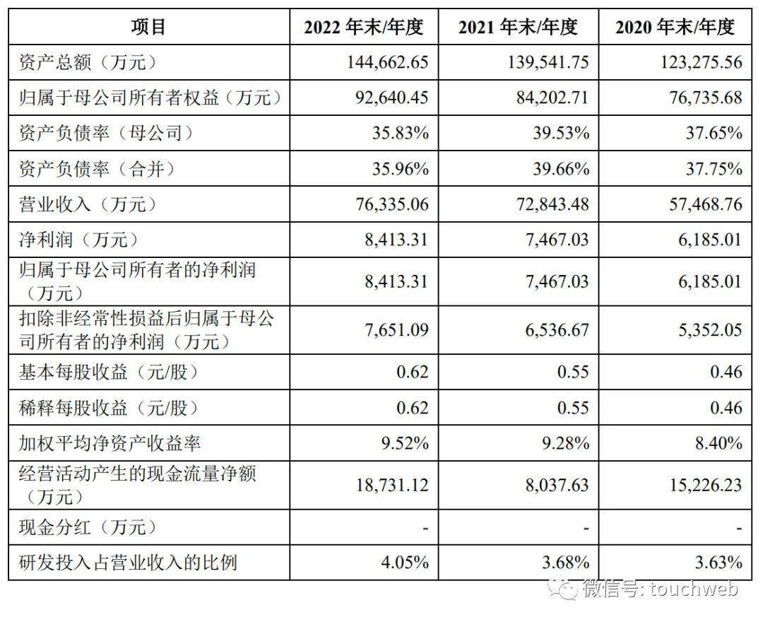 招股书显示,理研股份2020年、2021年、2022年营收分别为5.75亿元、7.28亿元、7.63亿元;净利分别为6185万元、7467万元、8413.3万元;扣非后净利分别为5352万元、6536.67万元、7651万元。