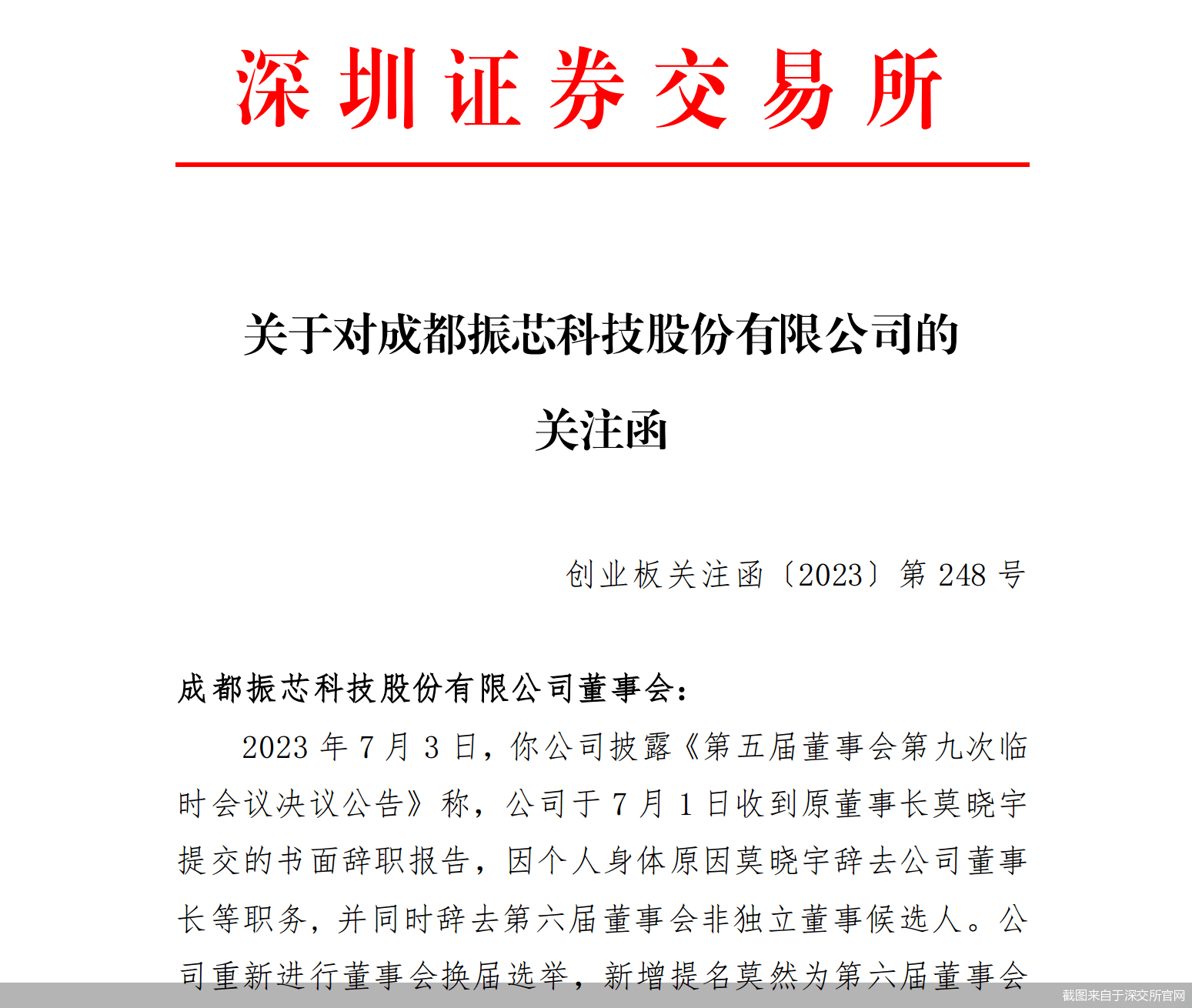 在深交所向振芯科技下发的关注函中,透露了振芯科技原董事长莫晓宇被举报的信息。