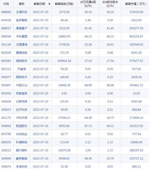 【限售解禁】