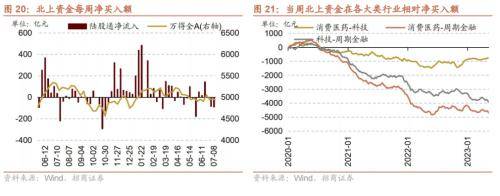 本周(7月3日-7月7日)北向资金净流出91.6亿元,净流出额扩大6.8亿元。行业偏好上,北上资金净买入规模较高的为汽车、通信、交通运输等,分别净买入25.2亿元、19.3亿元、10.6亿元;集中卖出食品饮料、医药生物、银行等,净卖出规模达-37.6亿元、-25.0亿元、-21.4亿元。