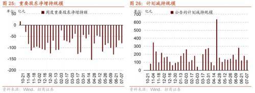从资金需求来看,重要股东净减持规模扩大,计划减持规模下降。本周重要股东二级市场增持4.2亿元,减持84.6亿元,净减持80.4亿元,净减持规模扩大。其中,净增持行业仅银行;净减持规模较高的行业包括轻工制造、电子、汽车等。本周公告的计划减持规模为128.1亿元,较前期下降。