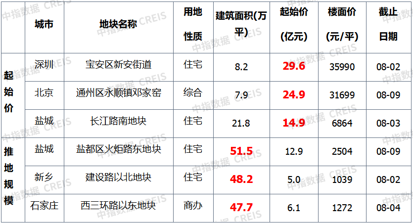 本周,深圳公告挂牌3宗宅地,总起始价逾46亿元。盐城新推9宗经营用地,总规划建筑体量近69万平。