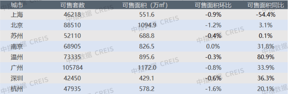 监测的8个代表城市整体库存环比小幅下降。其中,一线城市中,北京降幅最大,达1.2% ,上海次之,环比下降0.9%。二线城市中,杭州环比下降最大,为1.6%,苏州、温州次之,分别为0.4%和0.3%。