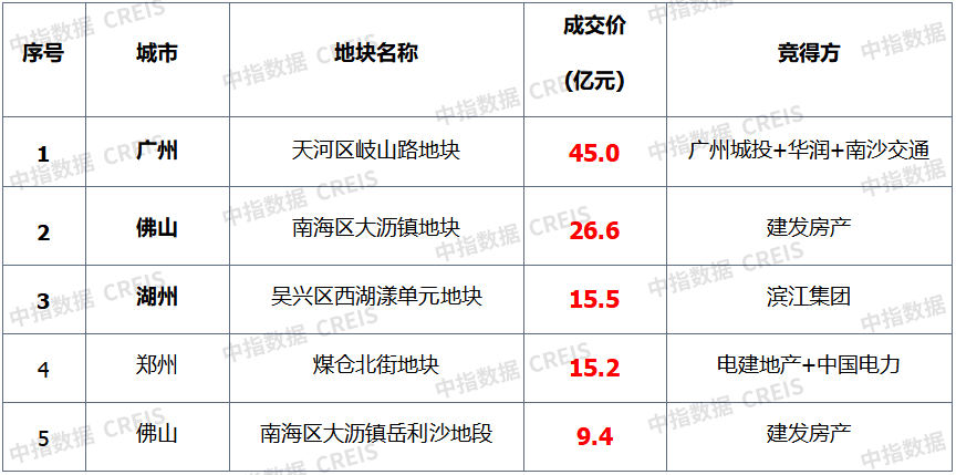 ▍宅地总价TOP5:榜单总额环比走低,广州宅地领跑榜单