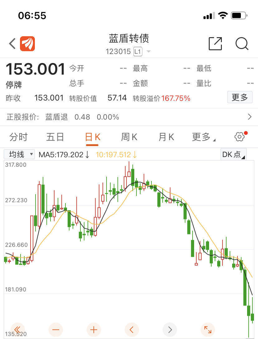 7月10日,蓝盾转债(代码123015,截至4月25日停牌报价153.001元)将步入退市整理期,这将是可转债历史上首只步入退市整理期的转债,30多年可转债零退市纪录由此被打破。