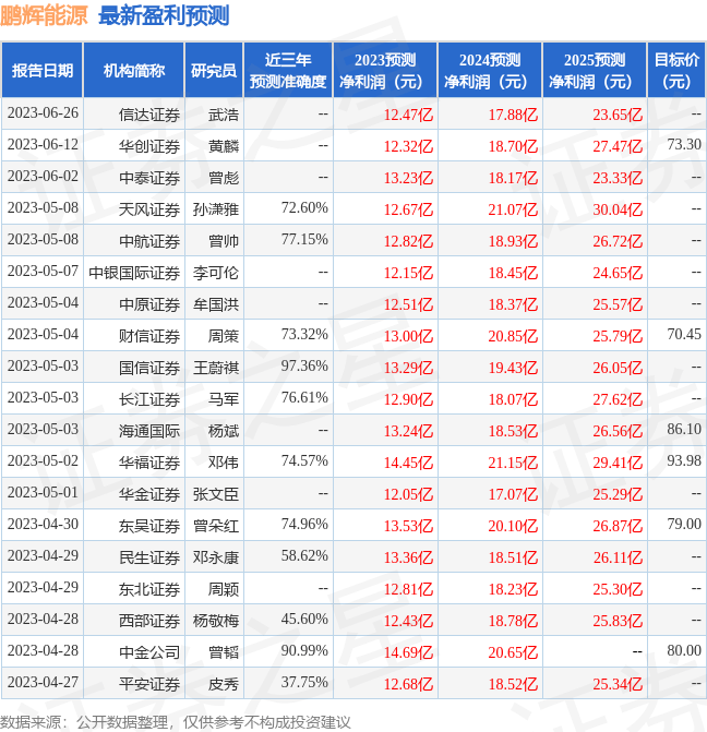 以下是详细的盈利预测信息: