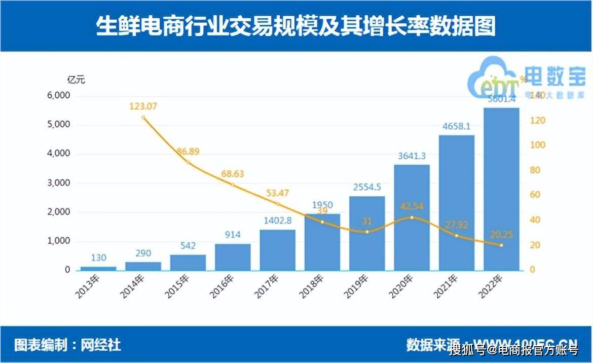 另外据“电数宝”电商大数据库显示,2022年城镇居民食品消费支出为21690亿元,生鲜电商交易额占城镇居民食品消费支出的比例为25.8%。经过多年培养,生鲜电商的目标受众已经形成了“网上买菜”的消费习惯,用户基本盘正在扩大。
