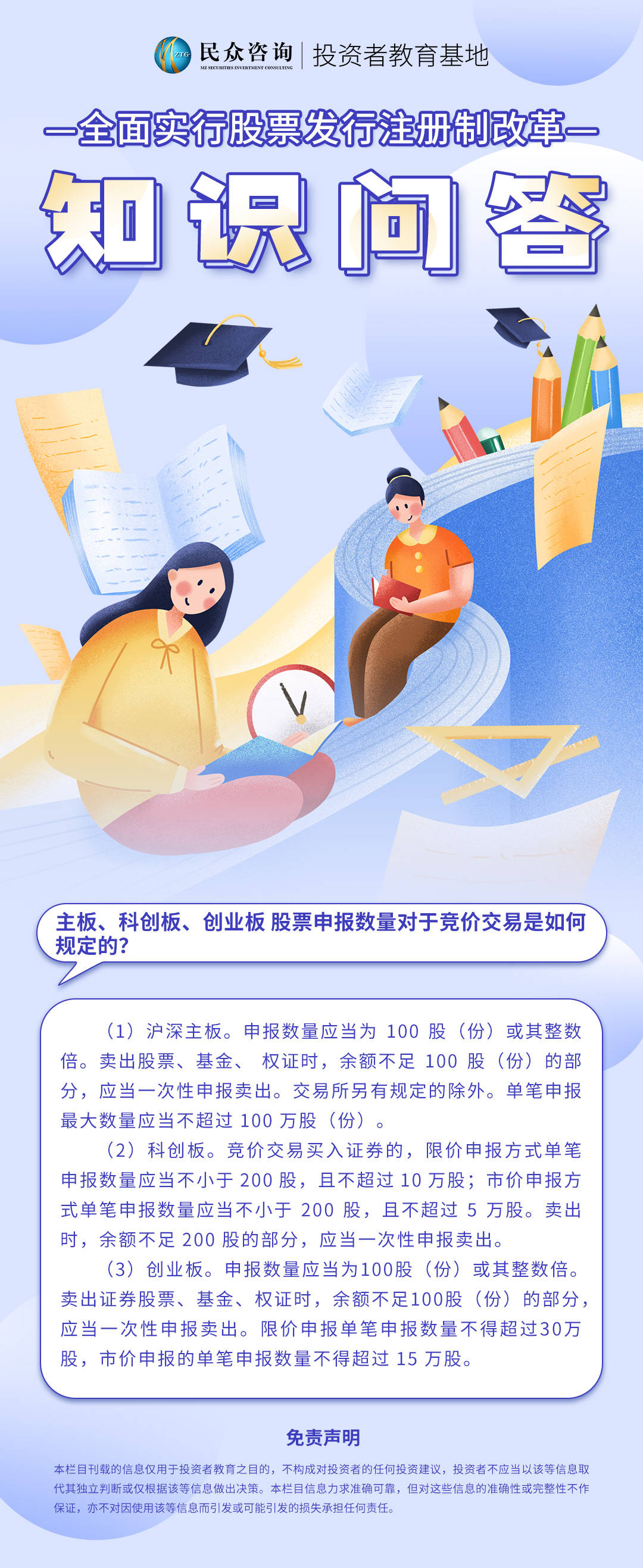 原标题:民众投教丨【注册制】股票申报数量对于竞价交易是如何规定的?
