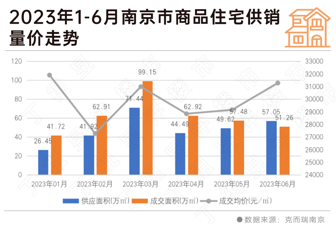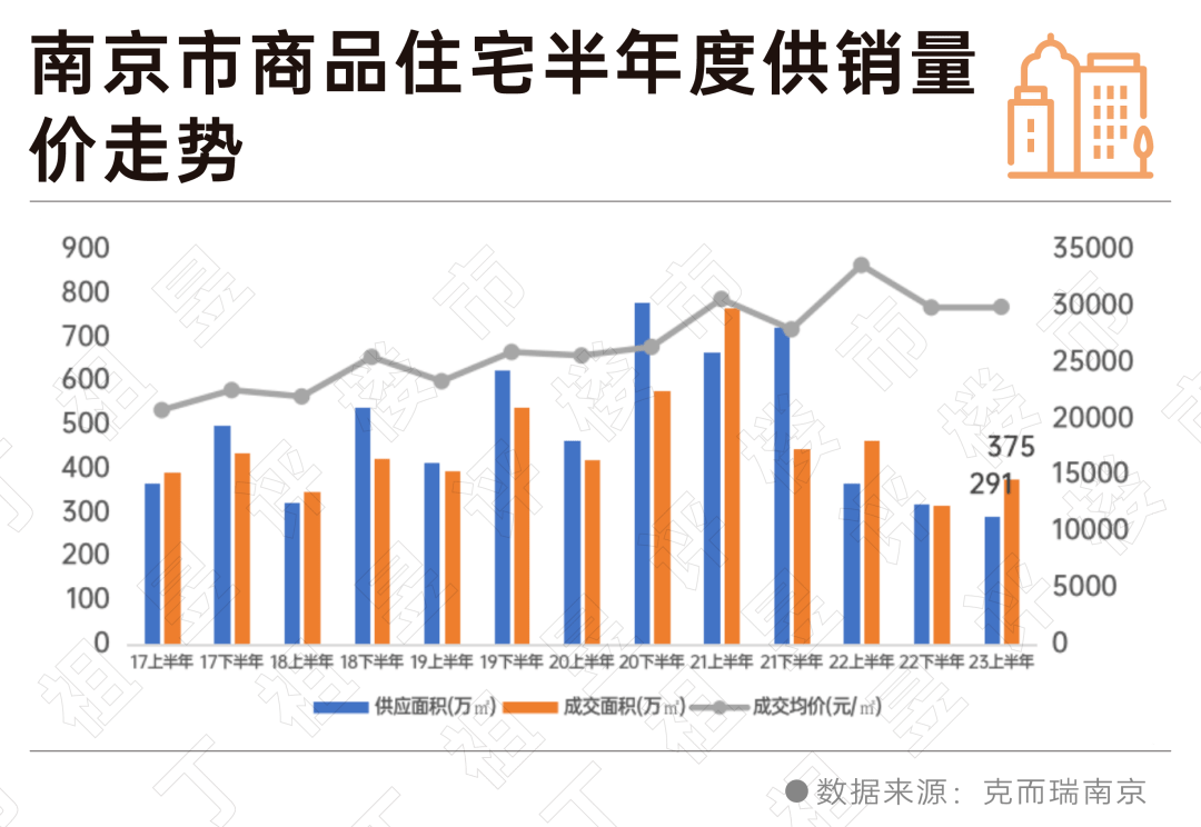 但政策对南京市场的刺激作用有限。上半年,南京市商品住宅供应面积291万平米,同比下滑21%,环比下滑9%;成交375万米,同比下滑19%,环比上涨9%;成交均价29873元/平米,同比下降11%,环比持平。