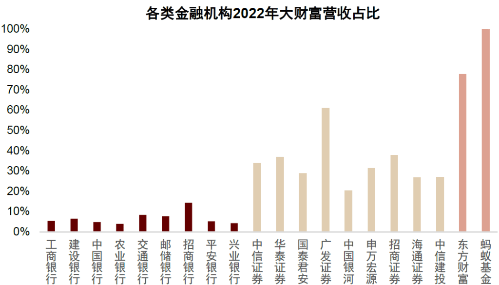 图表:各类金融机构2022年大财富营收占比