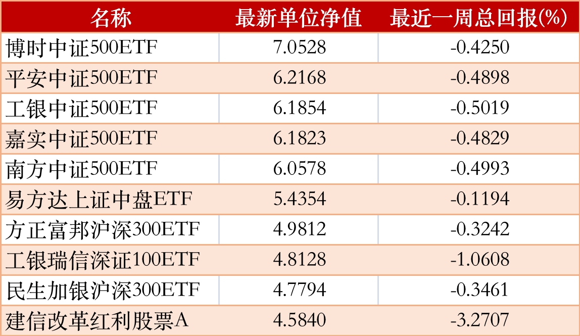 上周净值排行TOP10: