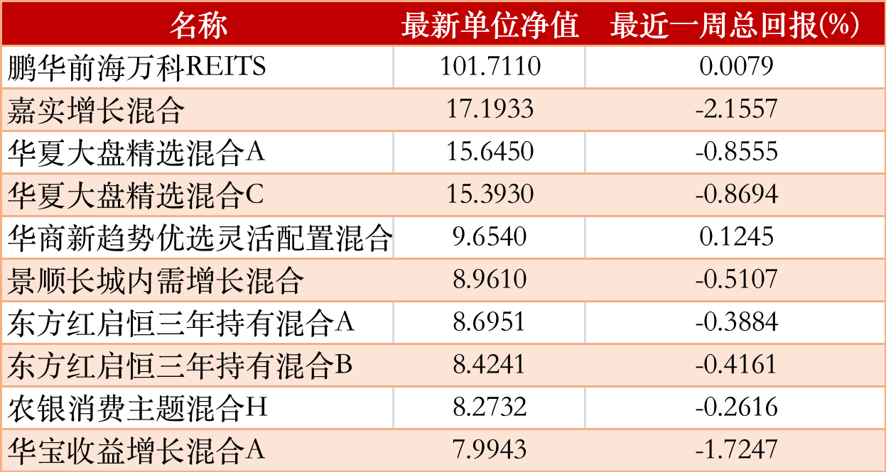 混合型基金上周净值排行