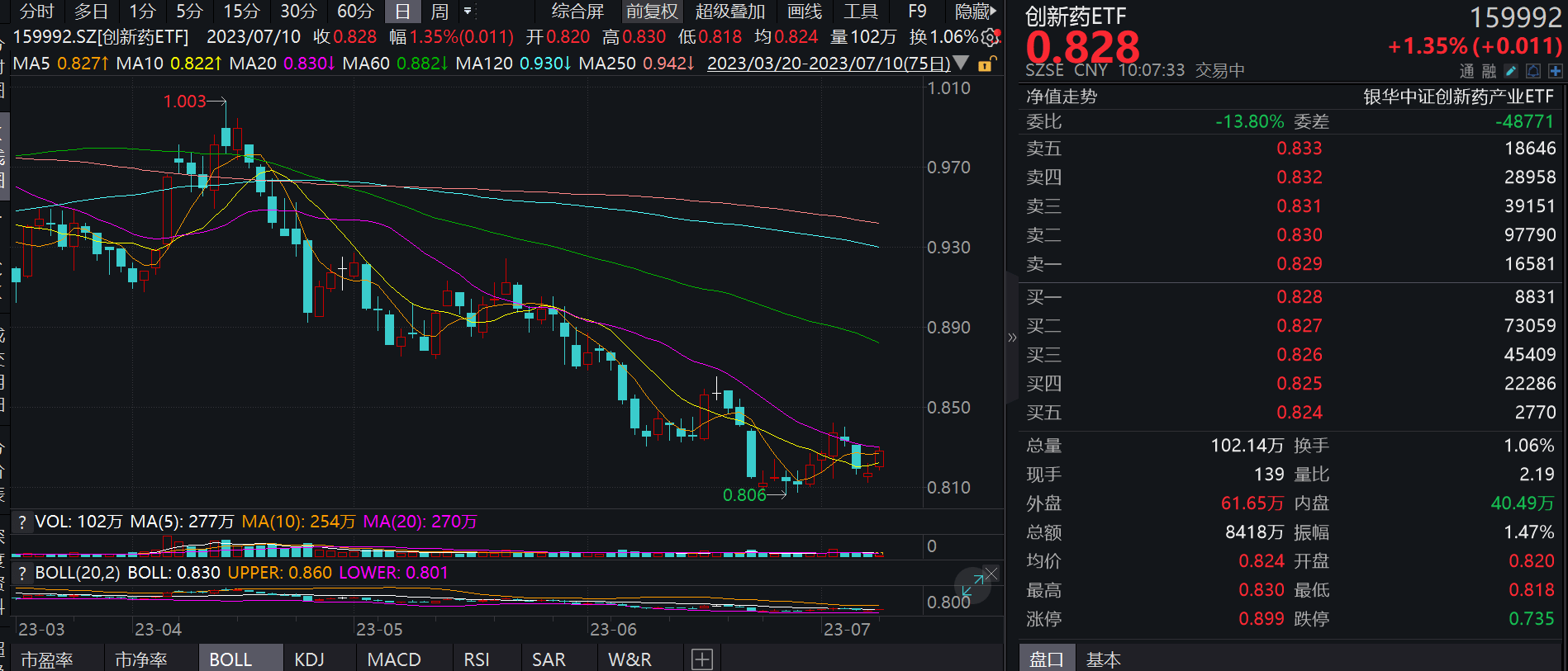 截至10:07,创新药ETF(159992)震荡走高,现涨幅达1.35%,成交额达8418万元,成交额持续扩大。该基金连续四个交易日获资金净流入,合计净流入超2亿元。