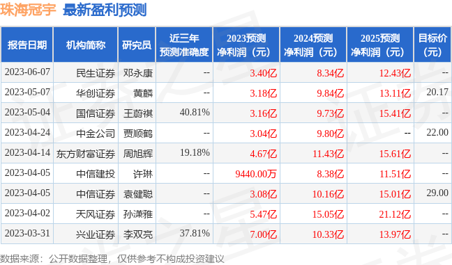 以下是详细的盈利预测信息: