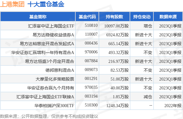 其中持有数量最多的基金为汇添富中证上海国企ETF,目前规模为68.62亿元,最新净值0.7993(5月24日),较上一交易日下跌1.72%,近一年上涨2.68%。该基金现任基金经理为吴振翔。