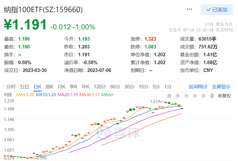 热门ETF方面,主打低费率的纳指100ETF(159660)今日下跌1%,连续两日调整。福利提示:纳指100ETF管理费0.5%/年,托管费0.15%/年,明显低于市场主流费率!