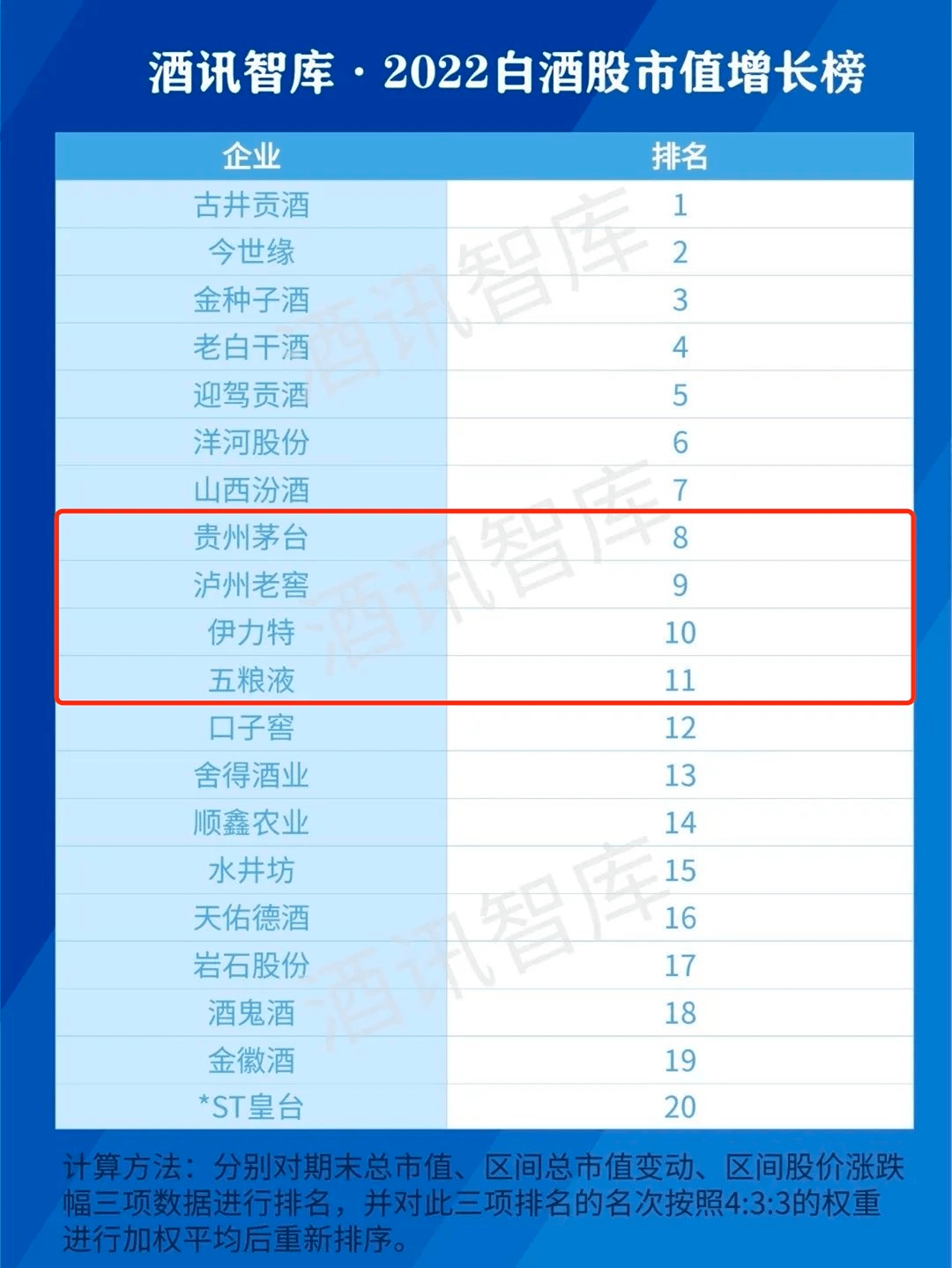 为此,酒讯智库对期末总市值、区间总市值变动、区间市值涨跌幅进行排位后,分别对上述三项排名的名次进行加权平均后重新排序,试图减弱“情绪”要素从而在总体上呈现出一种“模糊的精确”的结果。