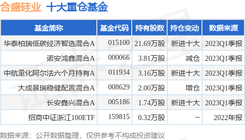 根据2023Q1季报公募基金重仓股数据,重仓该股的公募基金共5家,其中持有数量最多的公募基金为华泰柏瑞低碳经济智选混合A。华泰柏瑞低碳经济智选混合A目前规模为4.99亿元,最新净值0.6888(7月7日),较上一交易日下跌1.18%。该公募基金现任基金经理为牛勇。牛勇在任的基金产品包括:华泰柏瑞盛世中国混合,管理时间为2018年5月3日至今,期间收益率为48.8%;华泰柏瑞基本面智选A,管理时间为2019年6月5日至今,期间收益率为88.91%;华泰柏瑞成长智选混合A,管理时间为2020年11月23日至今,期间收益率为-24.68%;华泰柏瑞远见智选混合A,管理时间为2021年7月27日至今,期间收益率为-42.56%。