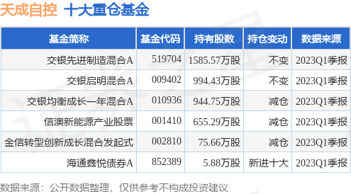重仓天成自控的公募基金请见下表: