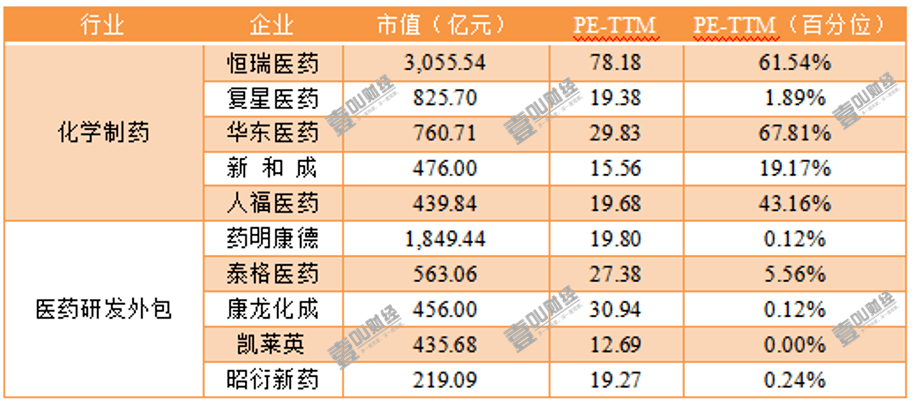 在不断下行的医药市场,研发及外包研发类药企的估值出现了更明显的下跌。
