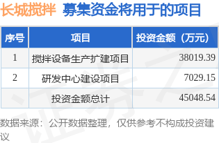 浙江长城搅拌设备股份有限公司(简称:长城搅拌)拟在深交所创业板上市,募资总金额为4.34亿元,保荐机构为东方证券承销保荐有限公司。募集资金拟用于搅拌设备生产扩建项目、研发中心建设项目,详见下表: