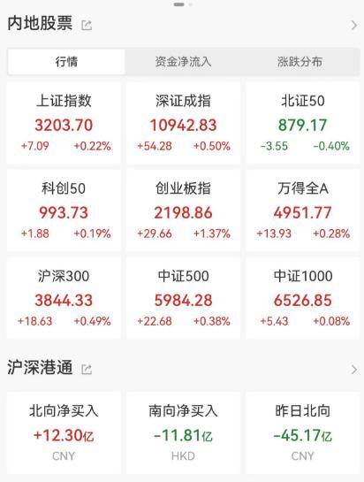 两市共2521只个股上涨,2422只个股下跌。北向资金净买入12亿元。