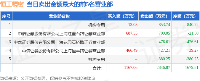 沪深交易所2023年7月10日公布的交易公开信息显示,恒工精密(301261)因无价格涨跌幅限制的证券登上龙虎榜。此次是近5个交易日内第1次上榜。