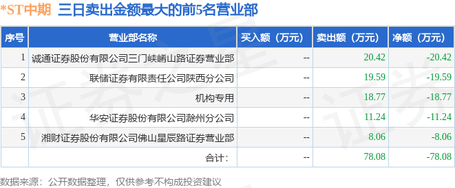 沪深交易所2023年7月10日公布的交易公开信息显示,*ST中期(000996)因连续三个交易日内,涨幅偏离值累计达到12%的ST证券、*ST证券和未完成股改证券登上龙虎榜。此次是近5个交易日内第2次上榜。